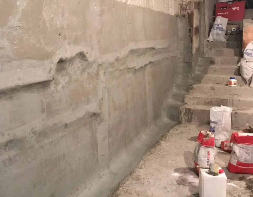 Для гідроізоляції такого типу стін було обрано систему матеріалів KRYS, здатну вирівняти поверхню та створити еластичний екран: