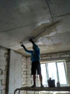 - Вирівнювання: Дефекти поверхні, нерівності та тріщини зашпакльовано безусадковим ремонтним складом KRYS RM FAST, створивши монолітну площину.
