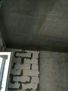 Квартира розташована на останньому поверсі будинку, тому плита перекриття піддається прямому впливу вологи через дефекти покрівлі. Завдання ускладнюється тим, що вода надходить зверху вниз, намагаючись «відірвати» гідроізоляцію від поверхні (негативний тиск). Доступу до виконання робіт зі сторони тиску води не було.