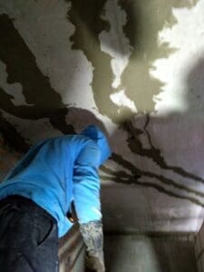 - Створення бар'єра: На підготовлену стелю нанесено двокомпонентну еластичну гідроізоляцію KRYS FLEX у 2 шари. Це дозволило створити гнучку мембрану, яка перекриває мікротріщини в бетоні та блокує вологу.