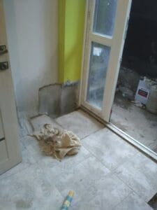 - Відновлення поверхні: Перед ін'єктуванням стіни оштукатурено високоміцним безусадковим складом KRYS RM FAST. Це створило міцний поверхневий шар, який запобігає витіканню ін'єкційного матеріалу назовні під час нагнітання тиску.
