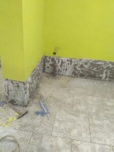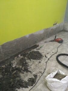 - Підготовка та доступ: Виконано демонтаж старої штукатурки та частини підлоги по периметру на висоту 50 см (зона намокання). Цеглу ретельно промито апаратом високого тиску для очищення та відкриття пор.