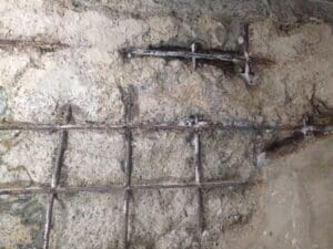 - Зупинка води: Активні фонтануючі протікання миттєво ліквідовано гідравлічним цементом KRYS PLUG, що дозволило проводити подальші роботи на сухій поверхні.