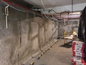 - Фінішна гідроізоляція: Відремонтовані ділянки стін та зони навколо швів покрито еластичною гідроізоляцією KRYS FLEX (2 шари), створивши додатковий бар’єр від капілярної вологи.