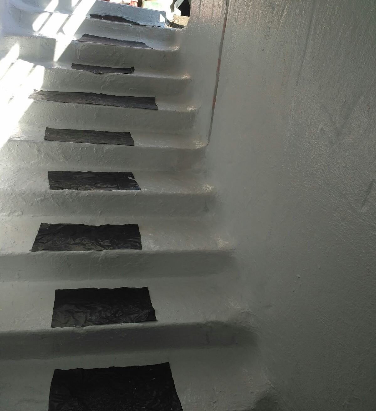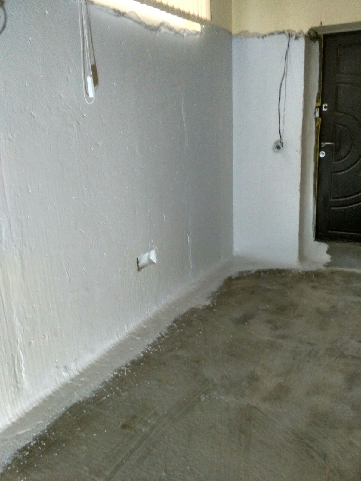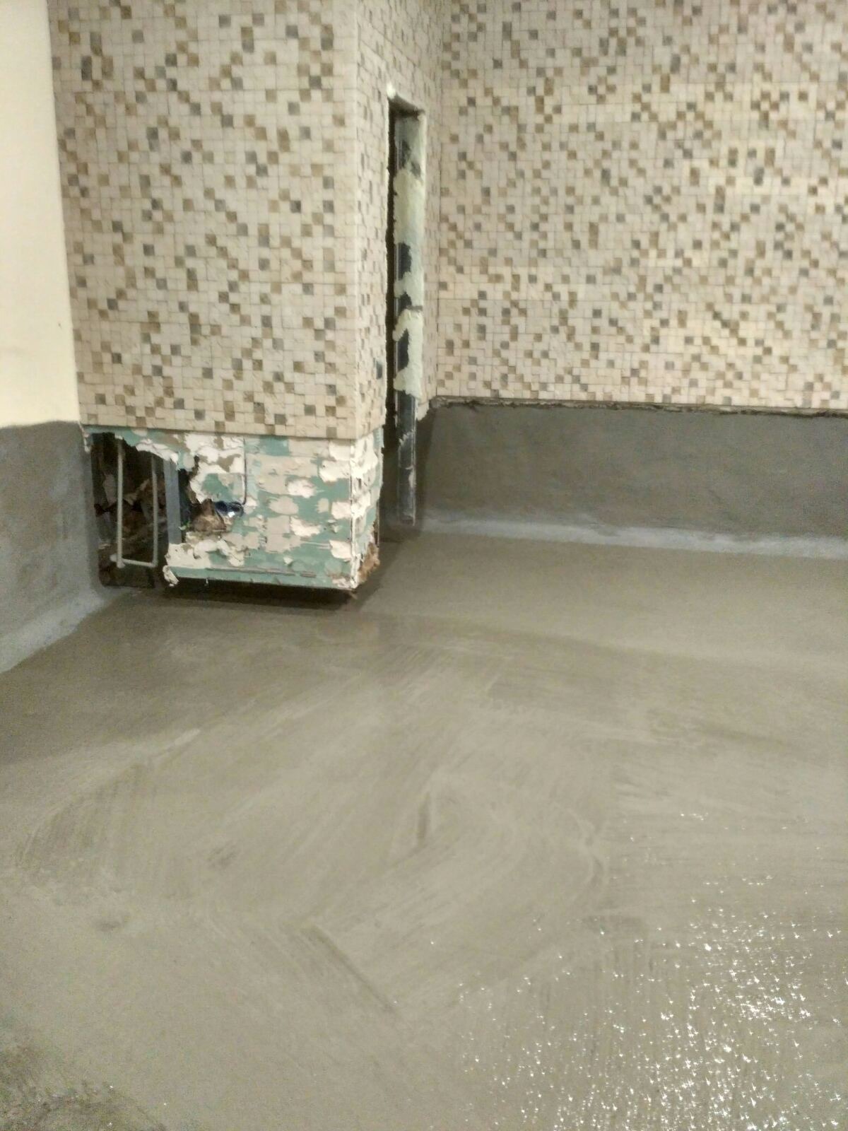 - Создание защитного слоя: На всю подготовленную поверхность стен (на заданную высоту) и пола нанесено два слоя двухкомпонентной гибкой гидроизоляции KRYS FLEX.