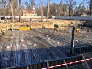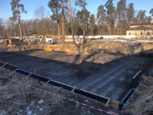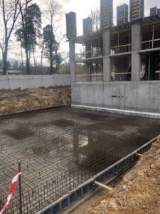 Фундаментная плита получила интегрированную гидроизоляционную защиту снизу. Бетон приобрел свойства водонепроницаемости уже на этапе набора прочности, что исключило необходимость дополнительных работ по наружной гидроизоляции подошвы фундамента.