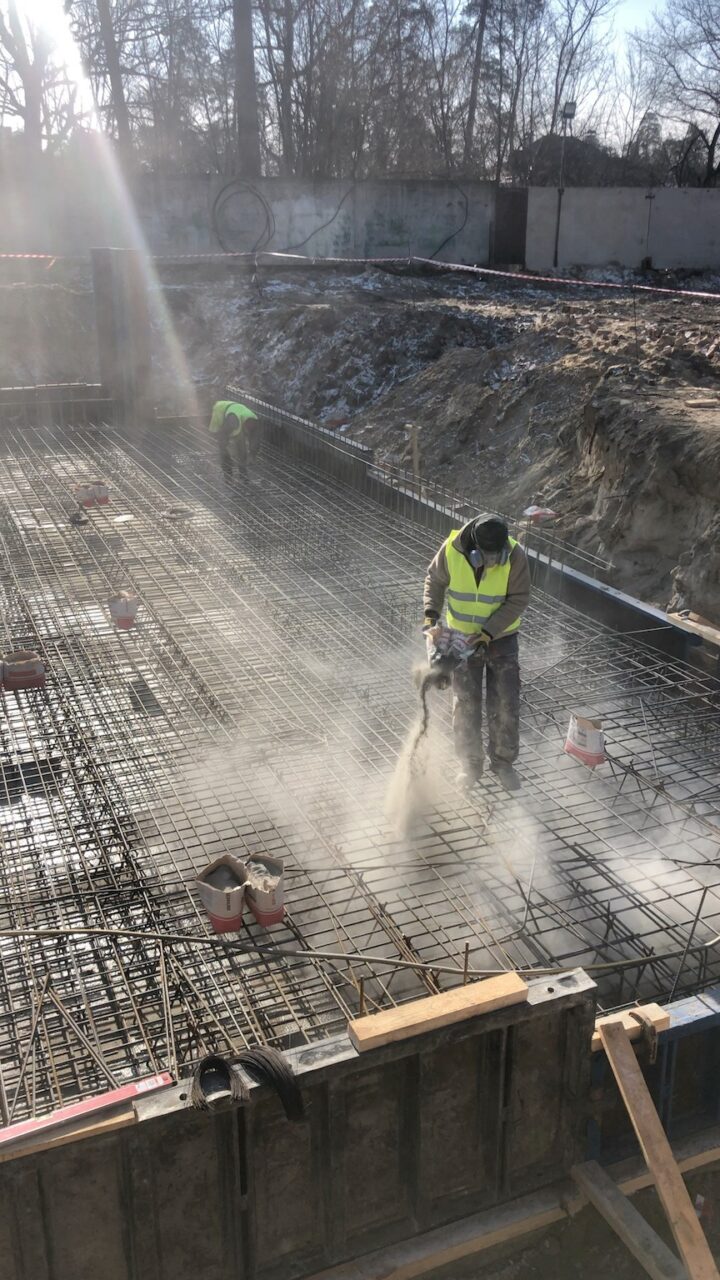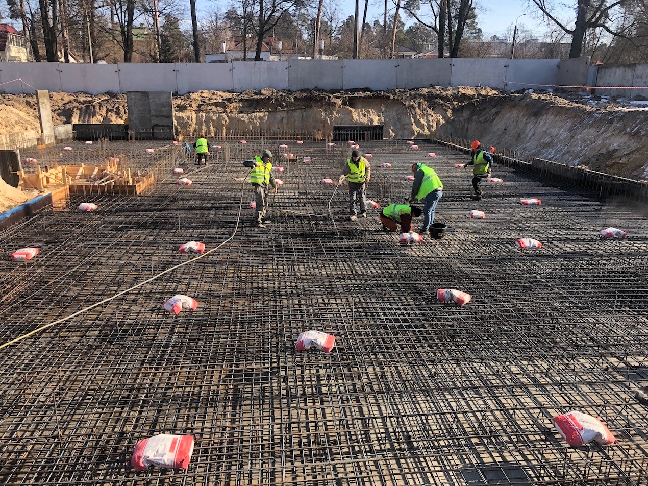 Необходимо было интегрировать гидроизоляцию непосредственно в структуру свежего бетона в момент заливки, обеспечив равномерное распределение активных химических компонентов по всей площади пятна застройки.