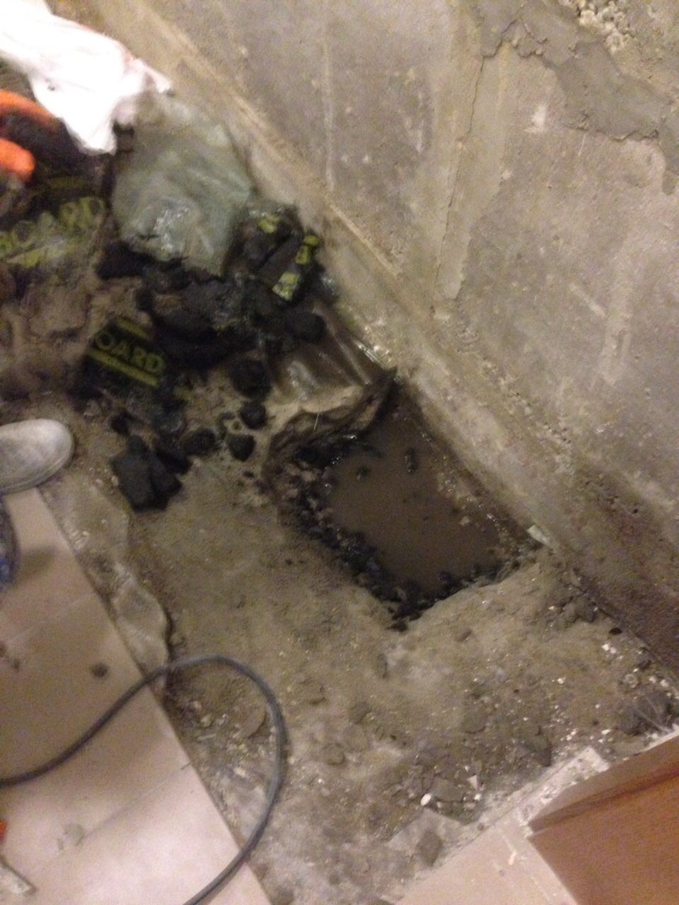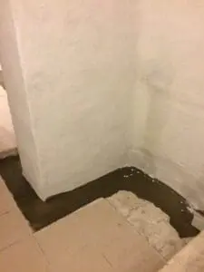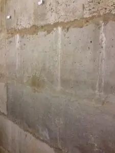 Подвал уже использовался и имел чистовую отделку (гипсокартон, плитка), которая скрывала проблемы с влагой. После демонтажа оказалось, что старые фундаментные блоки ФБС не только пропускают воду через швы, но и сами по себе являются достаточно хрупкими и слабыми.