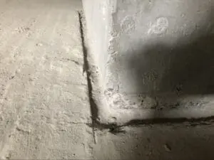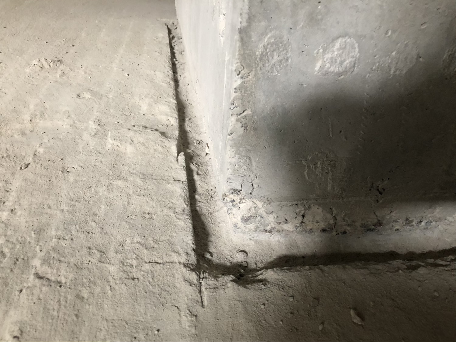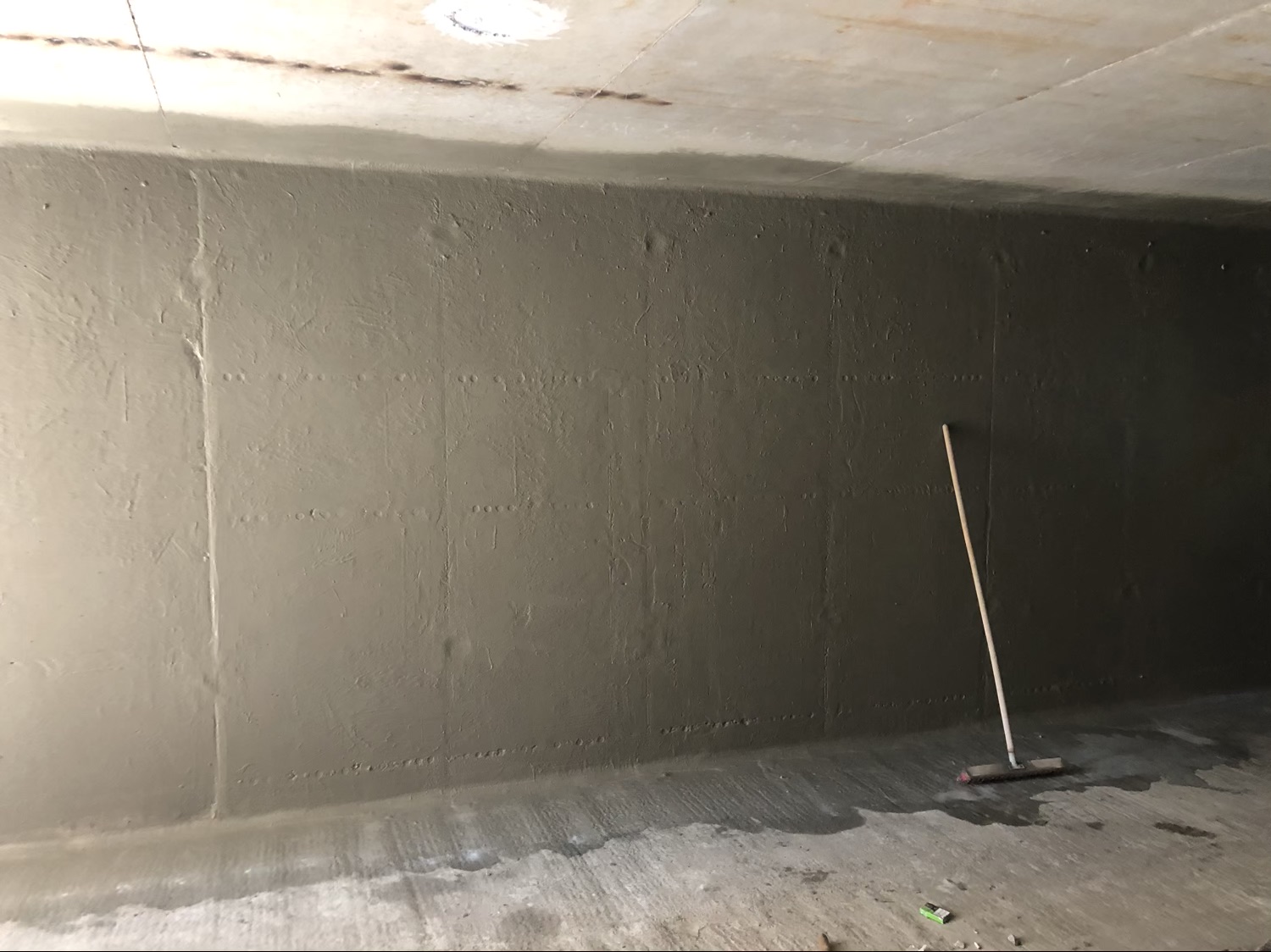 - Герметизация узлов: По всем примыканиям (стена-пол, стена-потолок, углы) нарезаны штробы. Отверстия от опалубки и швы зачеканены безусадочным ремонтным составом KRYS RM FAST с формированием выкружек (галтелей).