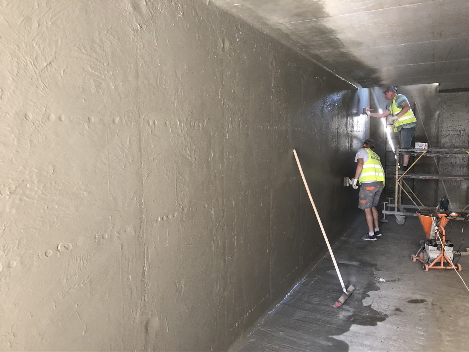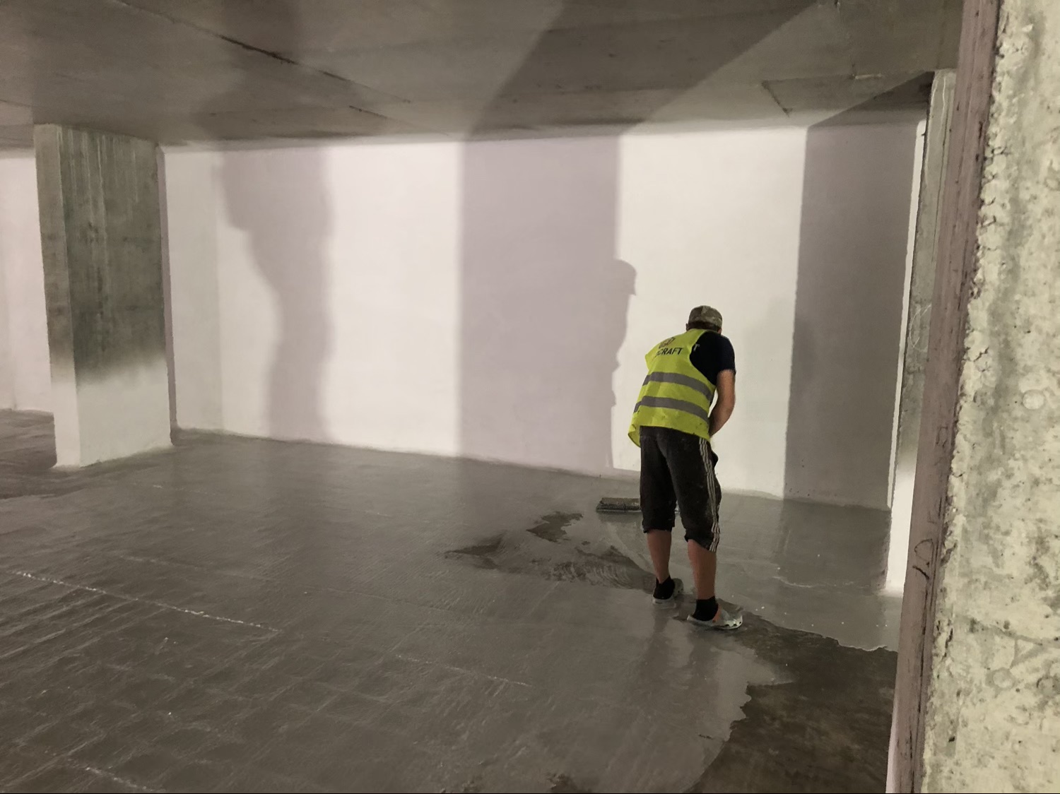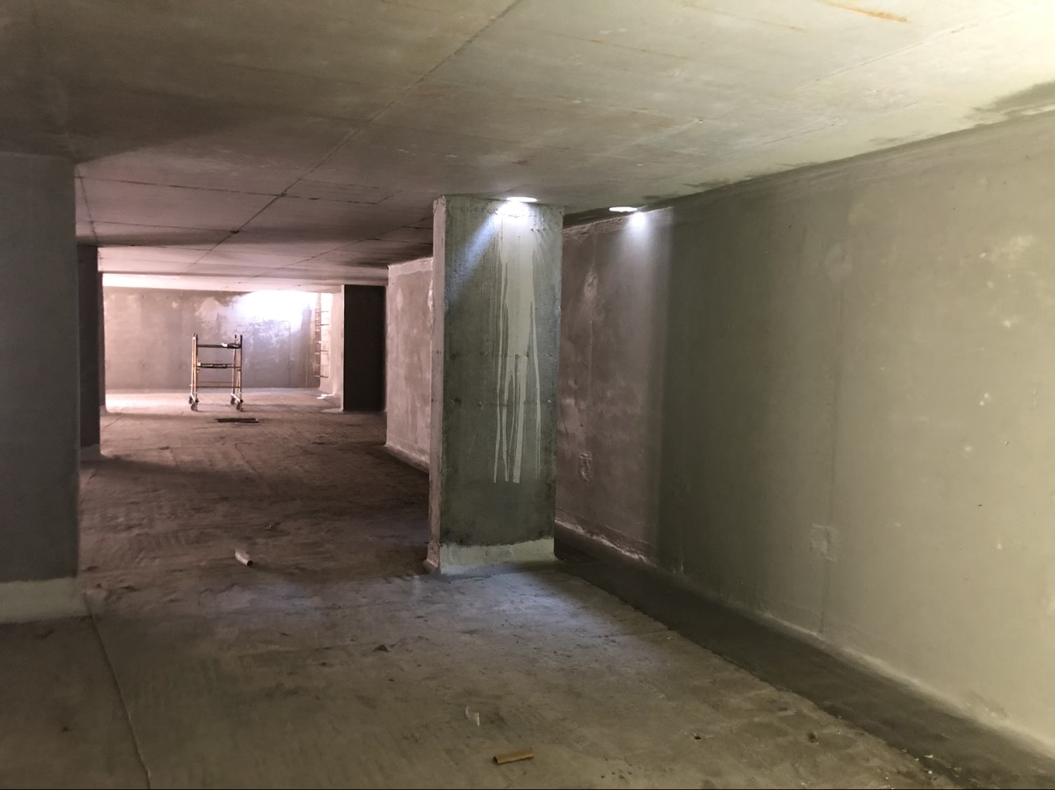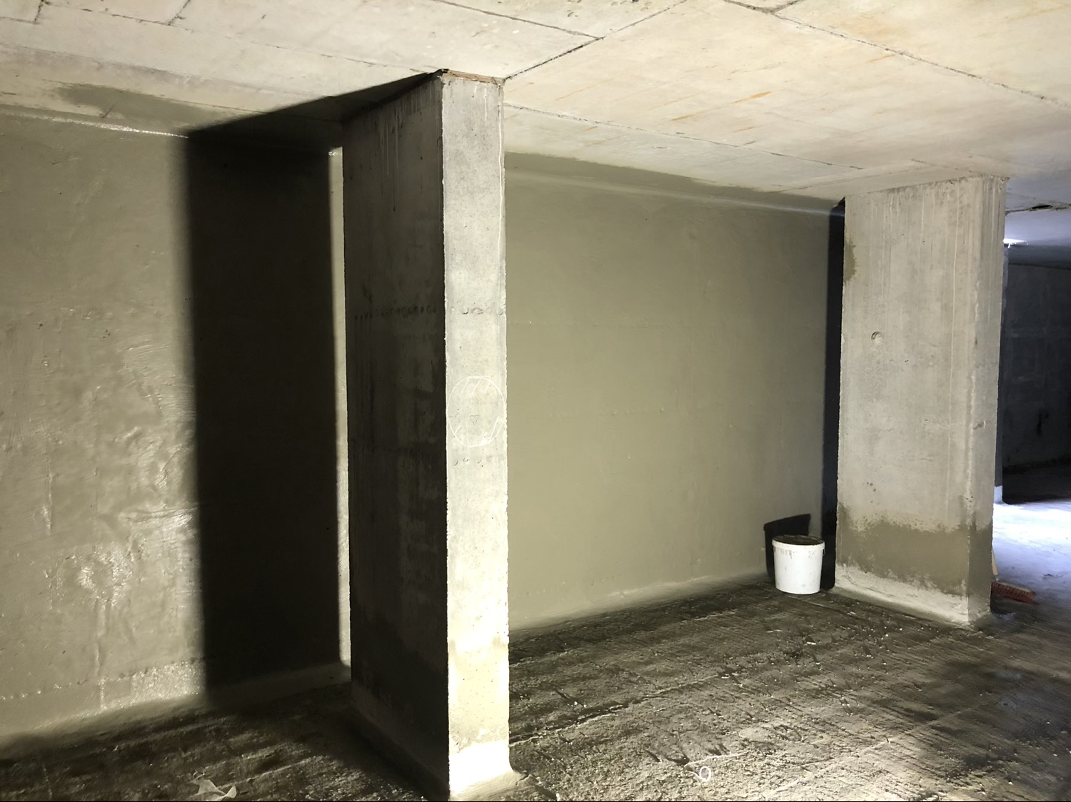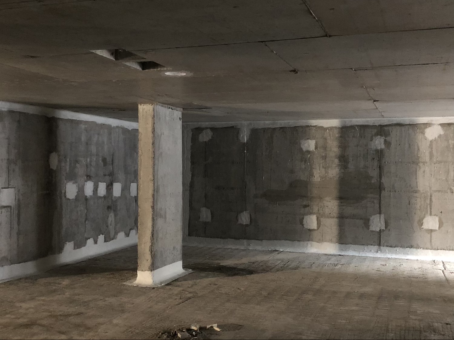 Подвальные помещения жилого комплекса, предназначенные для коммерческого использования, имеют сложную конфигурацию с большим количеством примыканий (стена-пол, стена-потолок). Поскольку внешняя гидроизоляция на этапе эксплуатации уже недоступна для ремонта, необходимо было создать дублирующий внутренний контур защиты, который выдержит отрицательное давление воды и обеспечит сухость класса "жилое помещение".