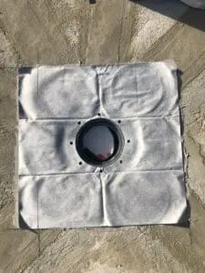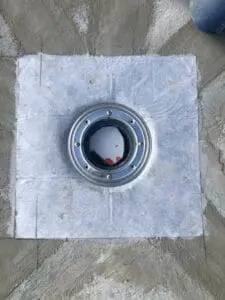 - Основная гидроизоляция: На всю площадь террасы, включая заходы на борта лотков и воронок, нанесено два слоя эластичной мембраны KRYS FLEX. Это создало единый бесшовный "ковер", надежно отводящий воду в систему слива.