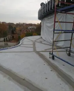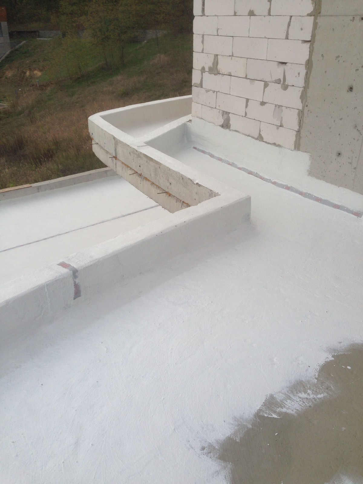 Открытые террасы и балконы постоянно подвергаются воздействию атмосферных осадков и значительных температурных колебаний. Поскольку бетонное основание имеет свойство расширяться и сужаться, обычная гидроизоляция может дать трещины. Особого внимания требуют точки водосброса (лейки и лотки), где из-за разницы коэффициентов расширения пластика/металла и бетона чаще всего возникают протечки.