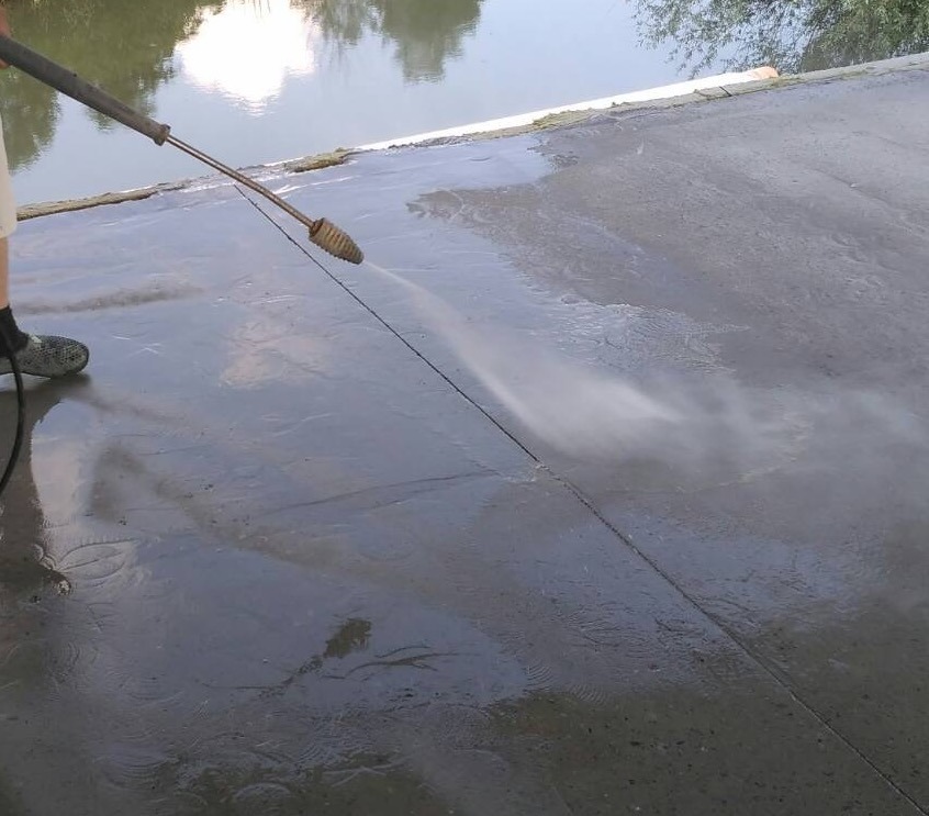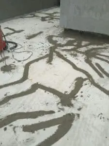 • Подготовка и укрепление: Бетонное основание очищено от пыли и слабых частиц. Поверхность обработана глубокопроникающим праймером KRYS PRIMER для обеспыливания и создания идеальной адгезии для последующих слоев.