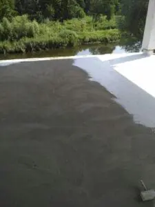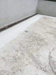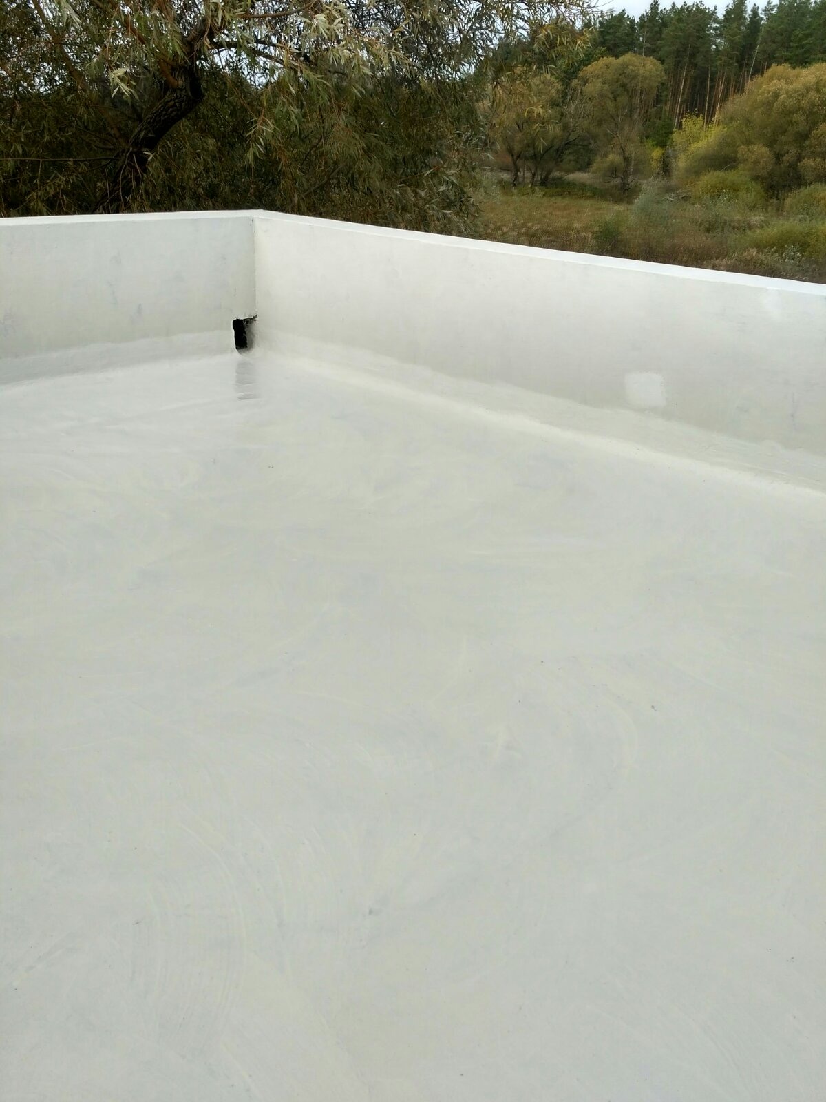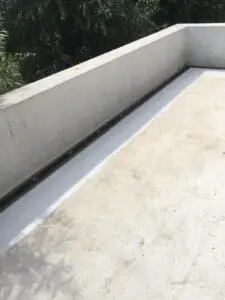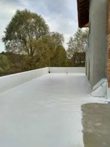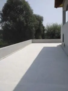 • Основной гидробарьер: На всю площадь террасы нанесено два слоя двухкомпонентной мембраны KRYS FLEX. Материал образовал сплошной резиноподобный слой, устойчивый к ультрафиолету и растяжениям.