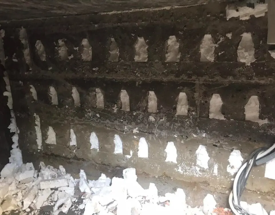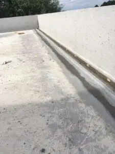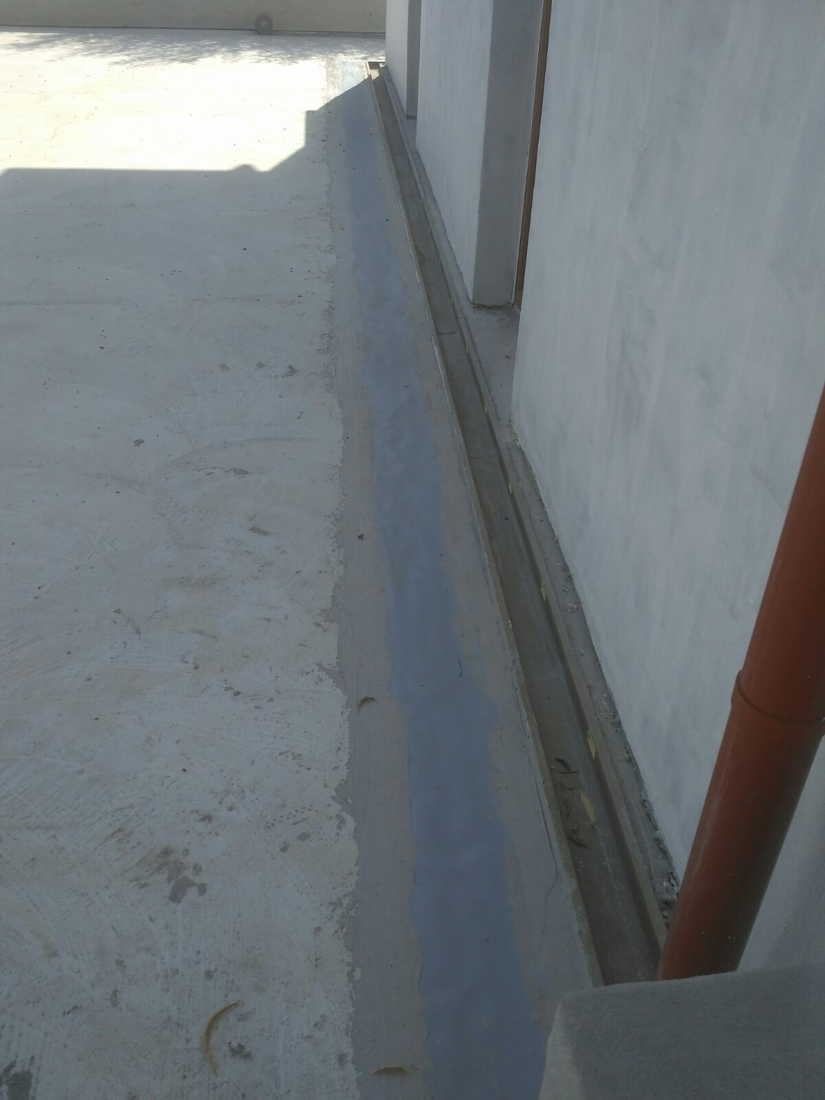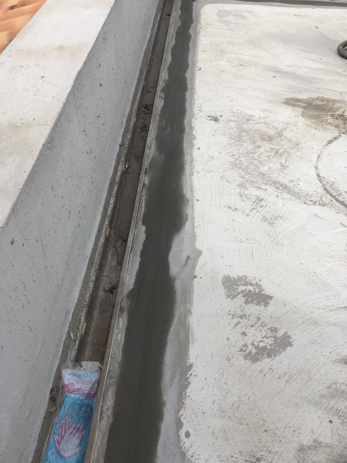• Монтаж и герметизация сливов: Установлены сливные воронки и лотки. Места их примыкания к бетону уплотнены герметиком и жестко зафиксированы безусадочным ремонтным составом KRYS RM FAST.