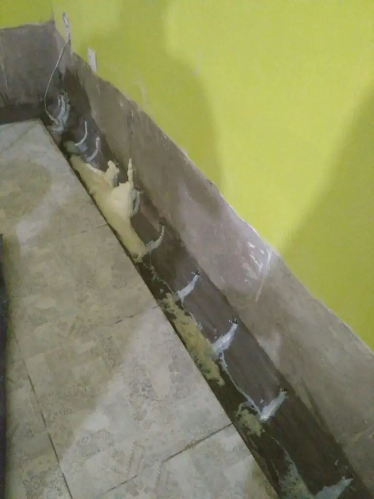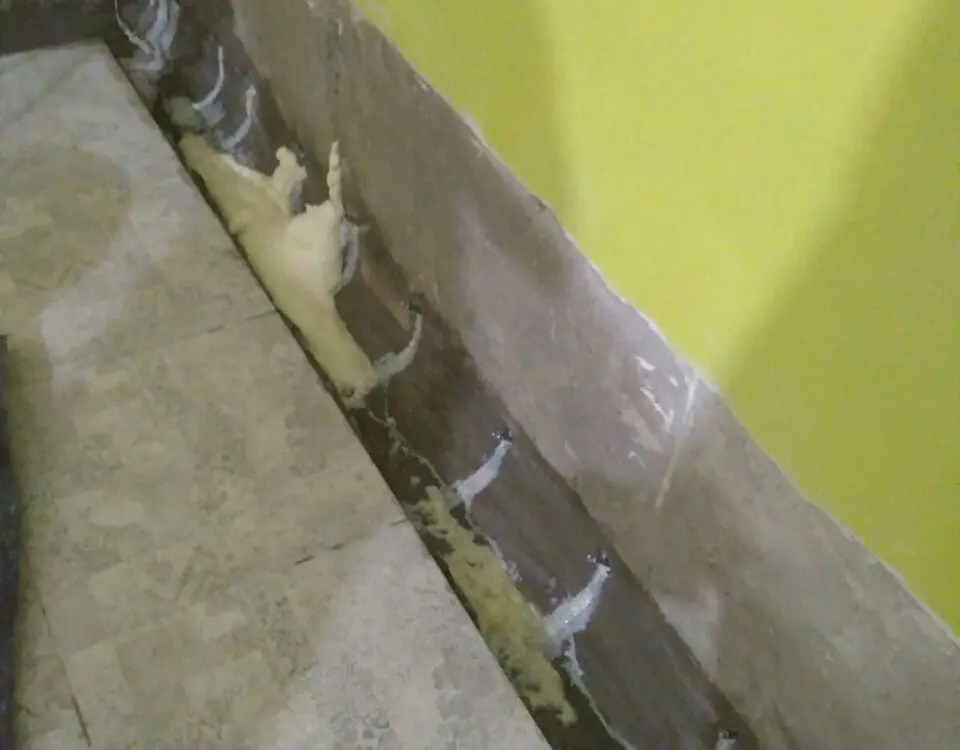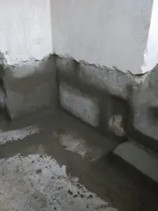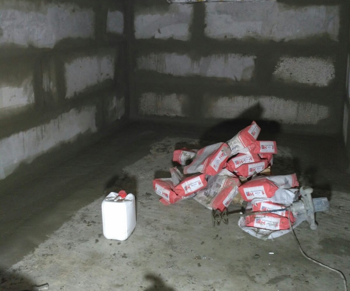 - Остановка воды: В местах активного поступления воды применен гидравлический цемент (гидропломба) KRYS PLUG, который мгновенно остановил протечки.