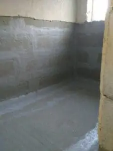- Сплошной барьер: На всю поверхность блоков нанесено два слоя мембраны KRYS FLEX. Это создало герметичный эластичный "кокон" внутри подвала.