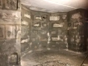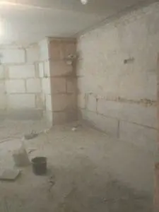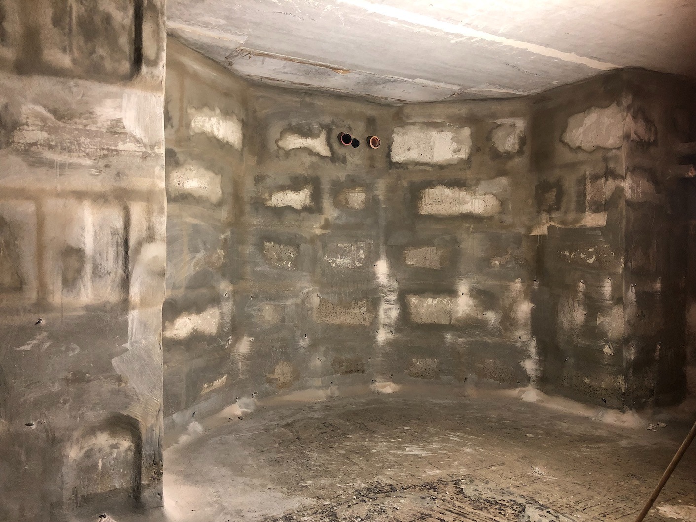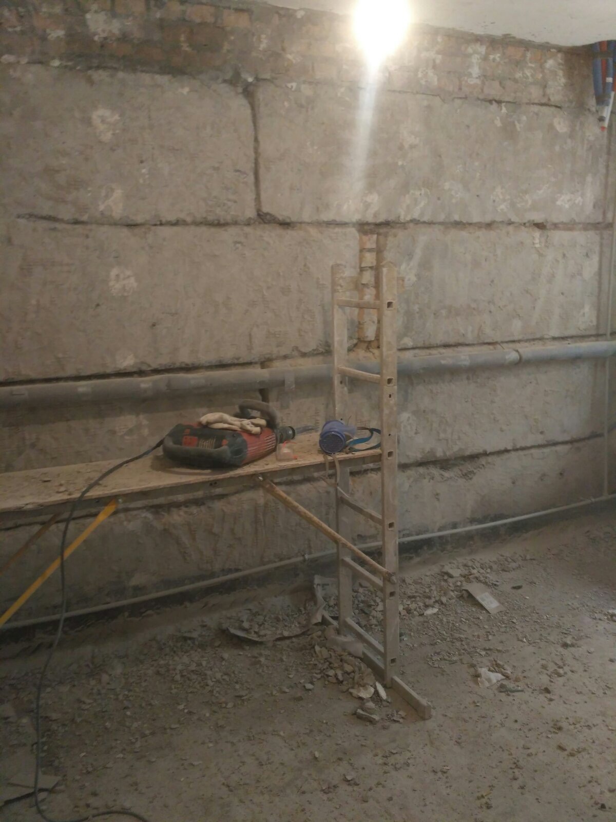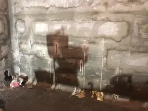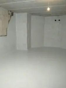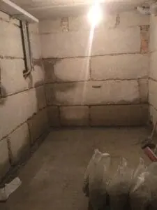 Фундаментные стены из блоков ФБС находились в плохом состоянии с глубокими пустотами в швах. Поскольку на момент проведения работ активных протечек не было (сухой период), появилась возможность применить технологию предварительной герметизации швов перед инъектированием.