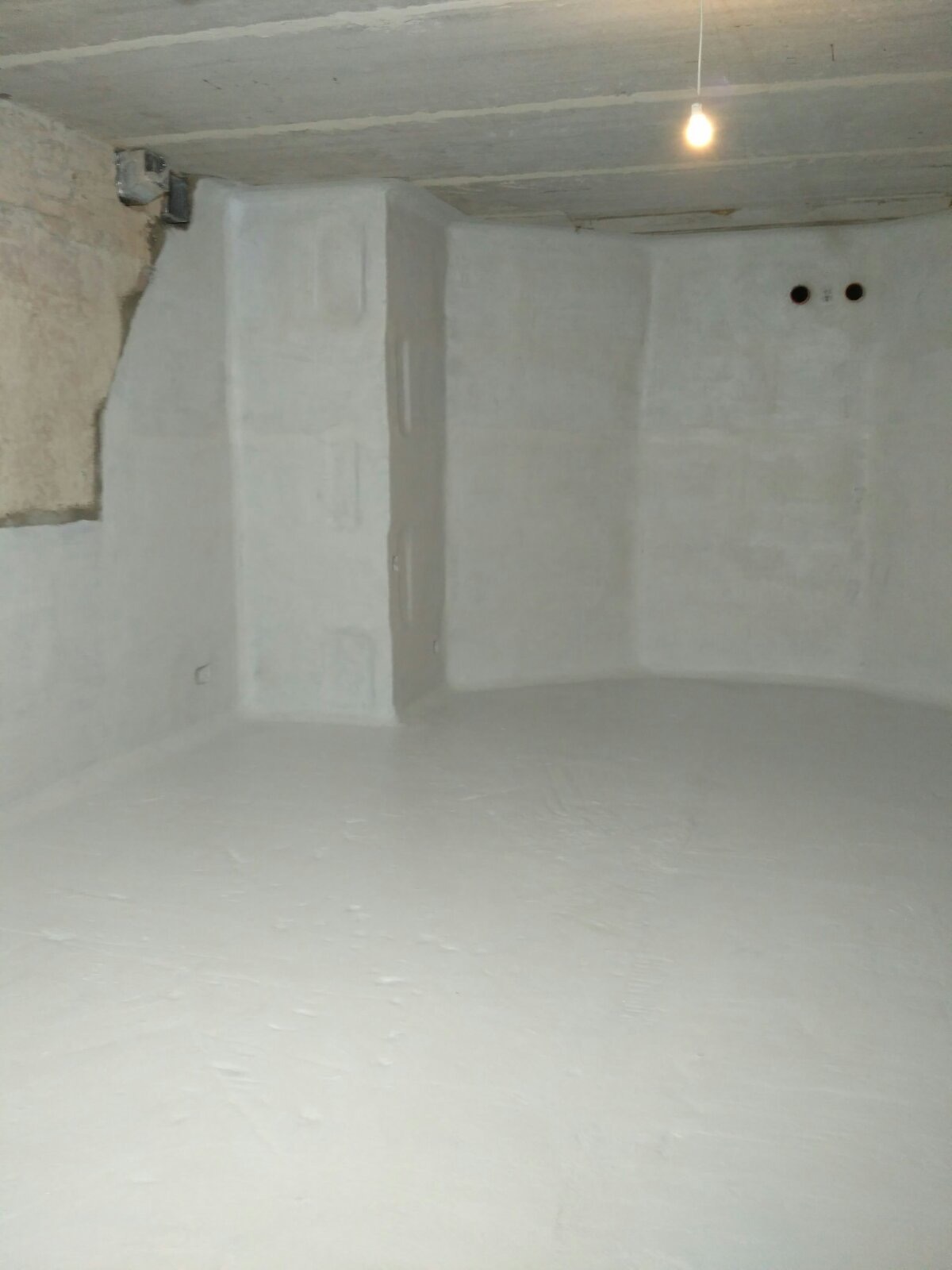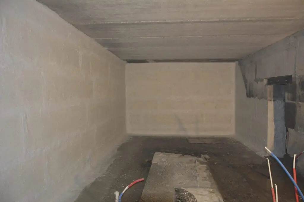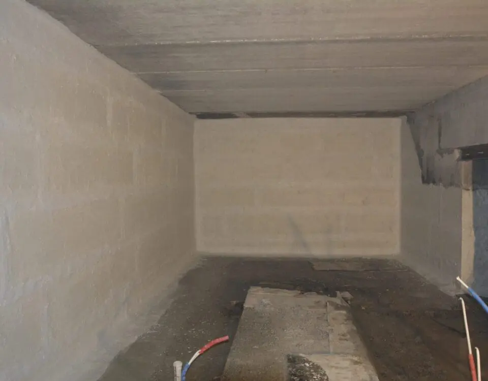 - Создание мембраны: На восстановленную и конструктивно укрепленную поверхность нанесена эластичная гидроизоляция KRYS FLEX (2 слоя) со сплошным армированием стеклосеткой для защиты от микротрещин.