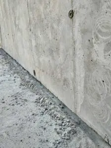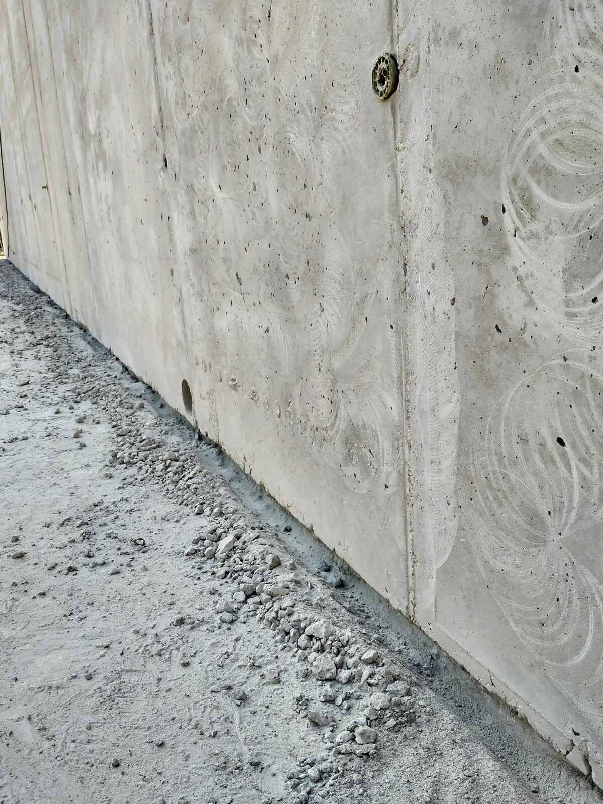 • Восстановление геометрии: Отверстия от стяжек опалубки зачеканены, а неровные участки поверхности выровнены (зашпаклеваны) безусадочным ремонтным составом KRYS RM FAST, создав прочную и ровную базу.