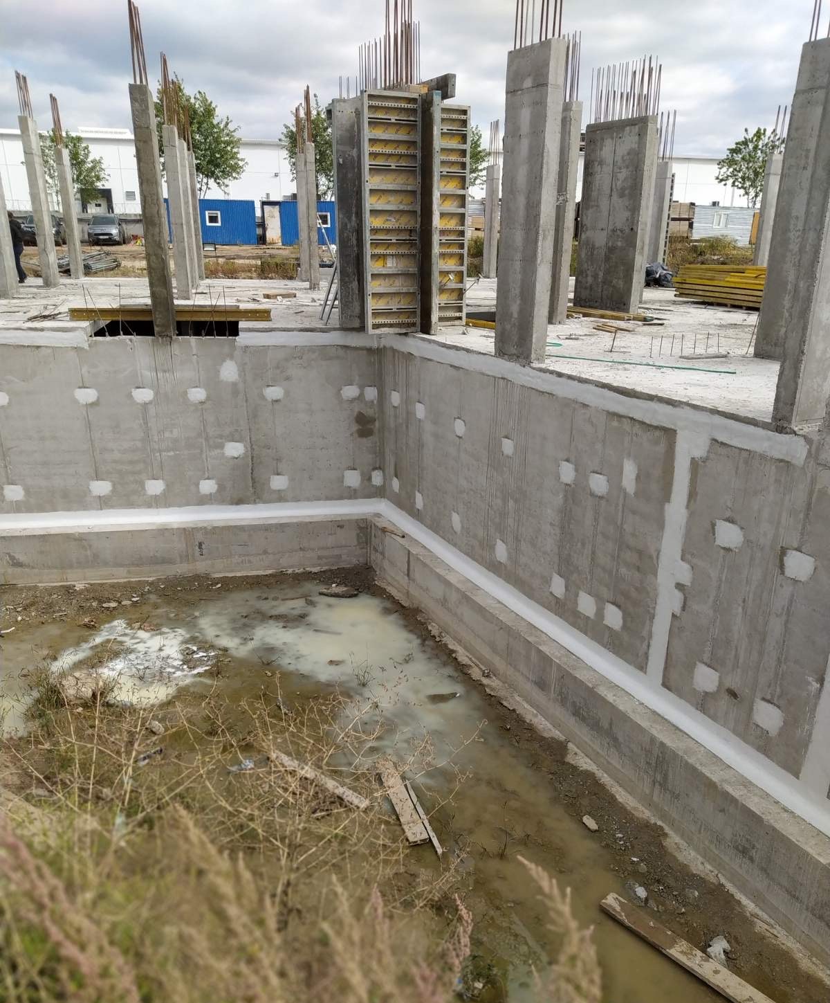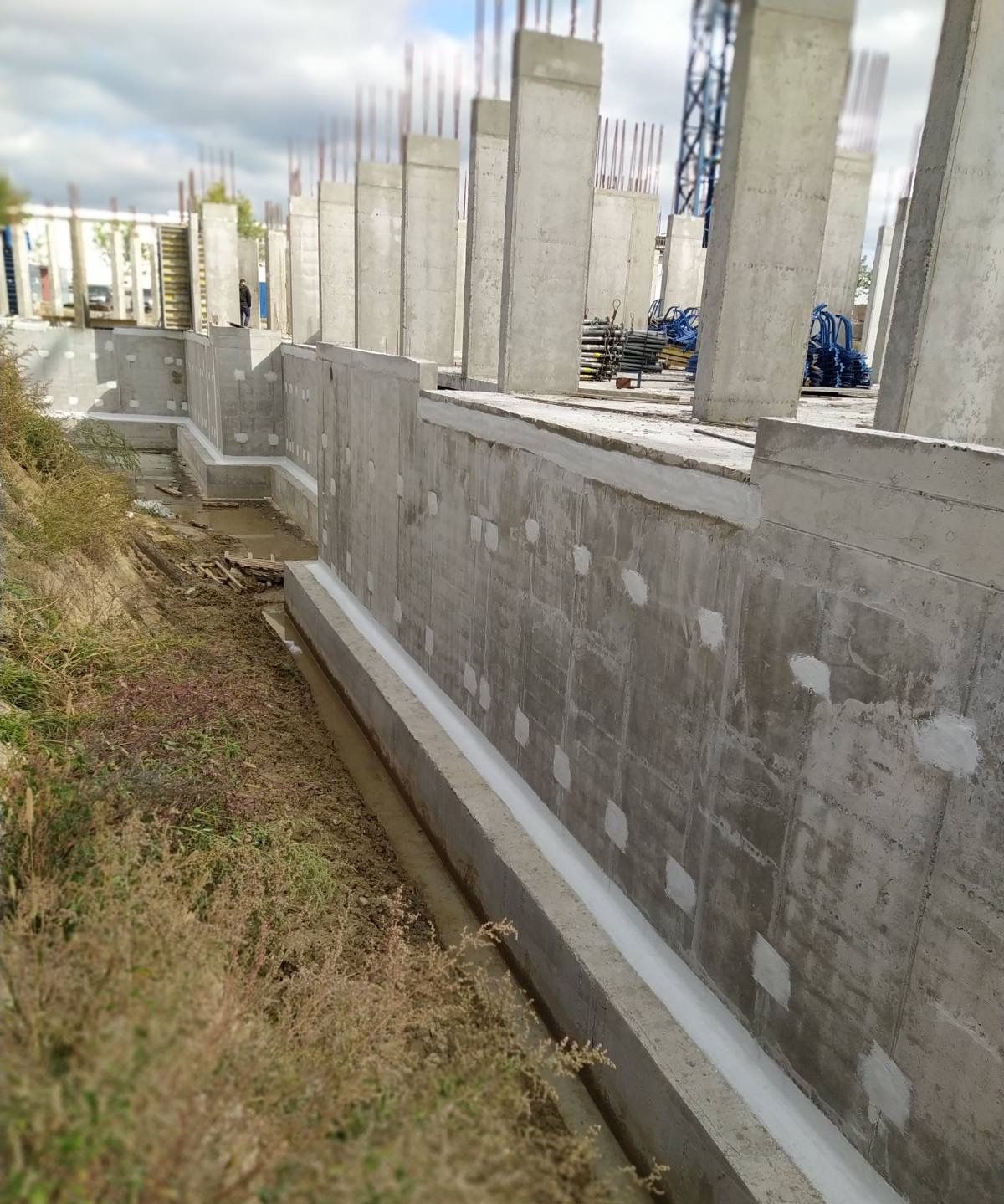 Проект предусматривает размещение в подвальном этаже многофункциональных помещений, что предъявляет строгие требования к их сухости. Поскольку после выполнения работ планируется утепление фундамента и обратная засыпка грунтом, доступ к гидроизоляционному слою будет заблокирован на весь период эксплуатации здания. Поэтому задачей было создать долговечный, ремонтопригодный (на этапе нанесения) и абсолютно герметичный барьер, который защитит бетон от агрессивного воздействия грунтовых вод и станет надежной основой для утеплителя.