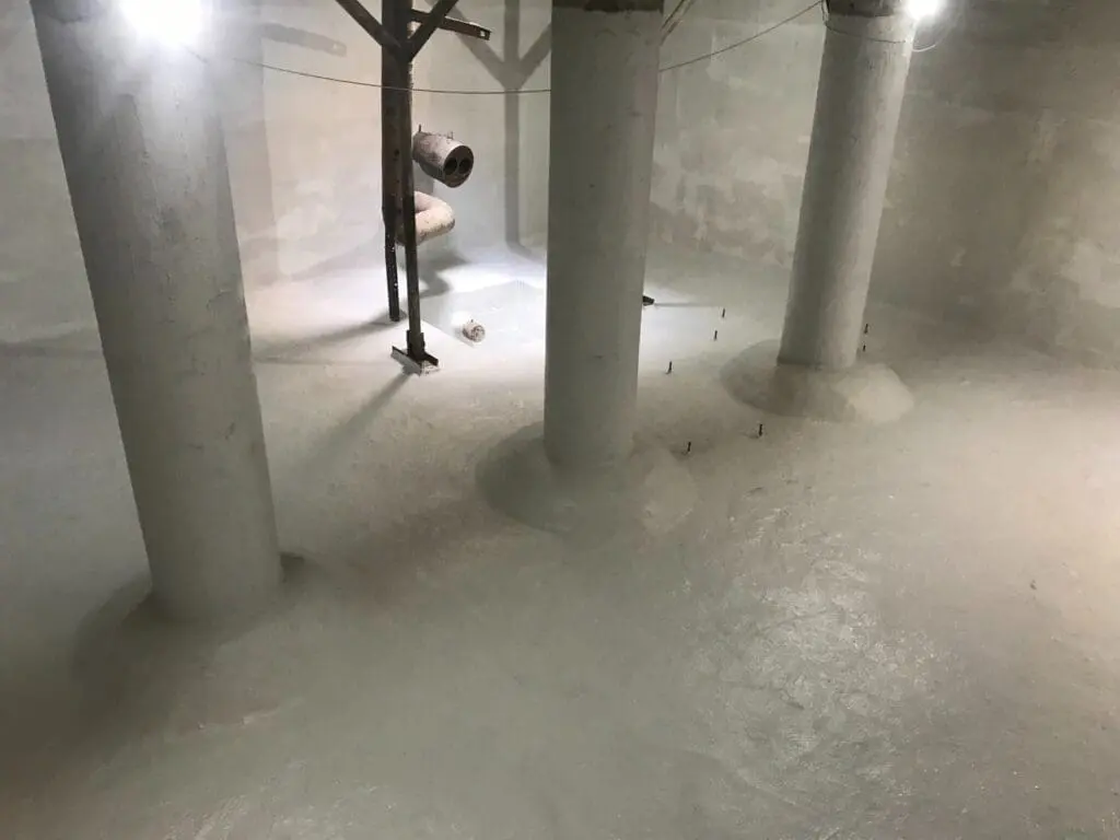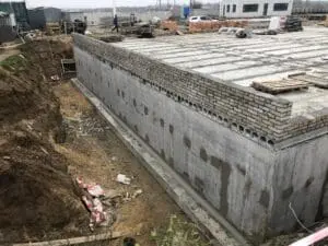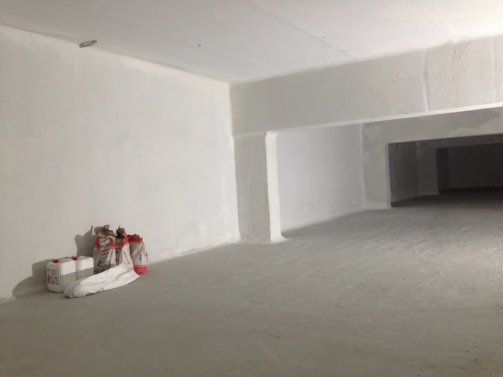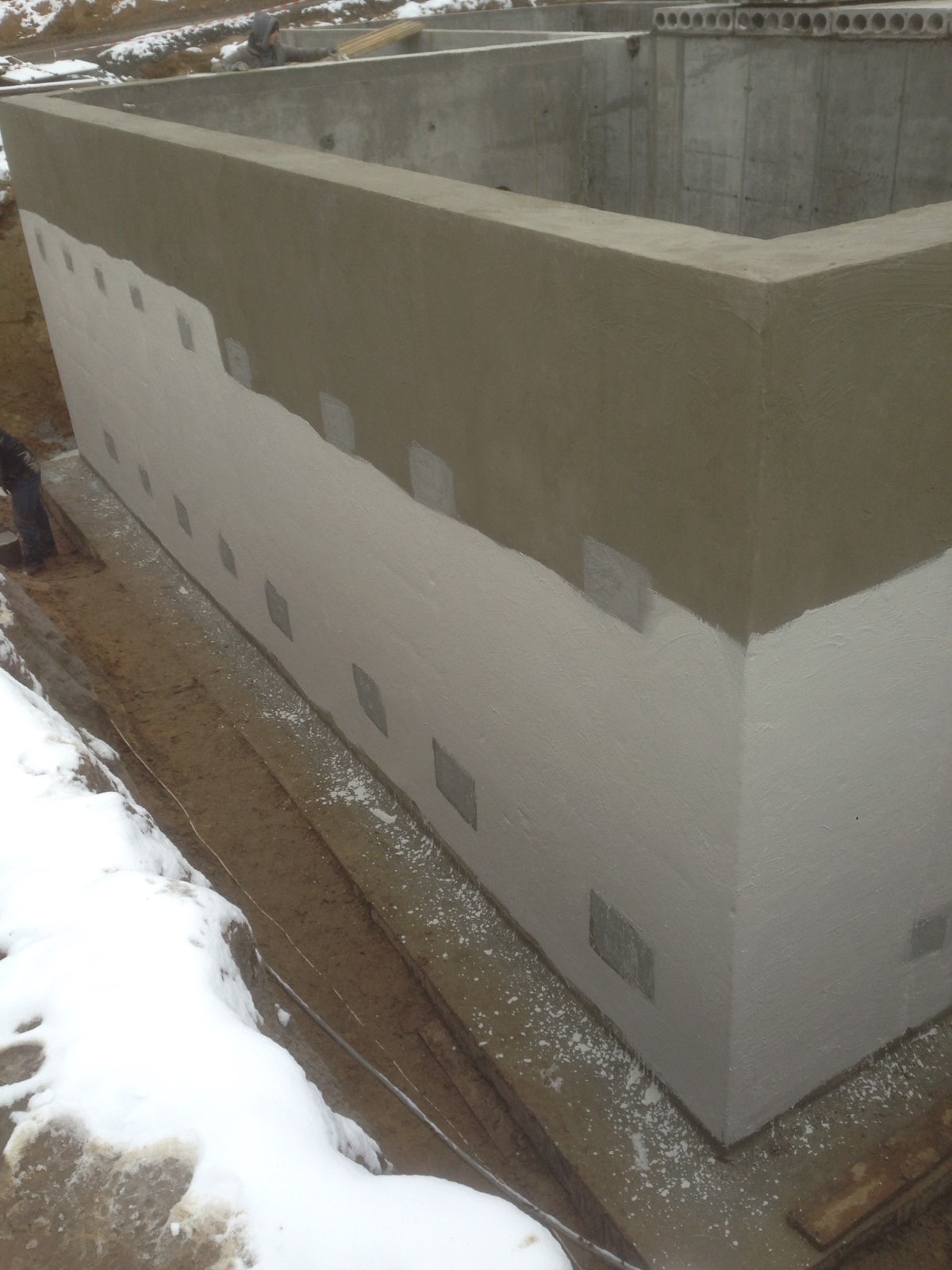 Основные плоскости резервуара снаружи обработаны проникающей гидроизоляцией KRYS PREMIUM для уплотнения структуры бетона и блокировки фильтрации.