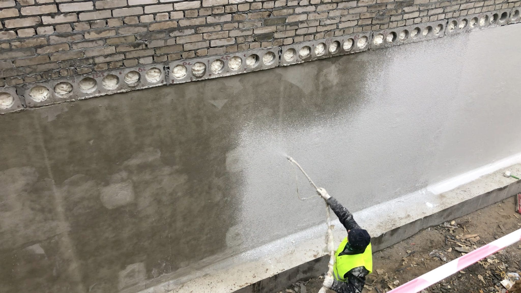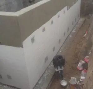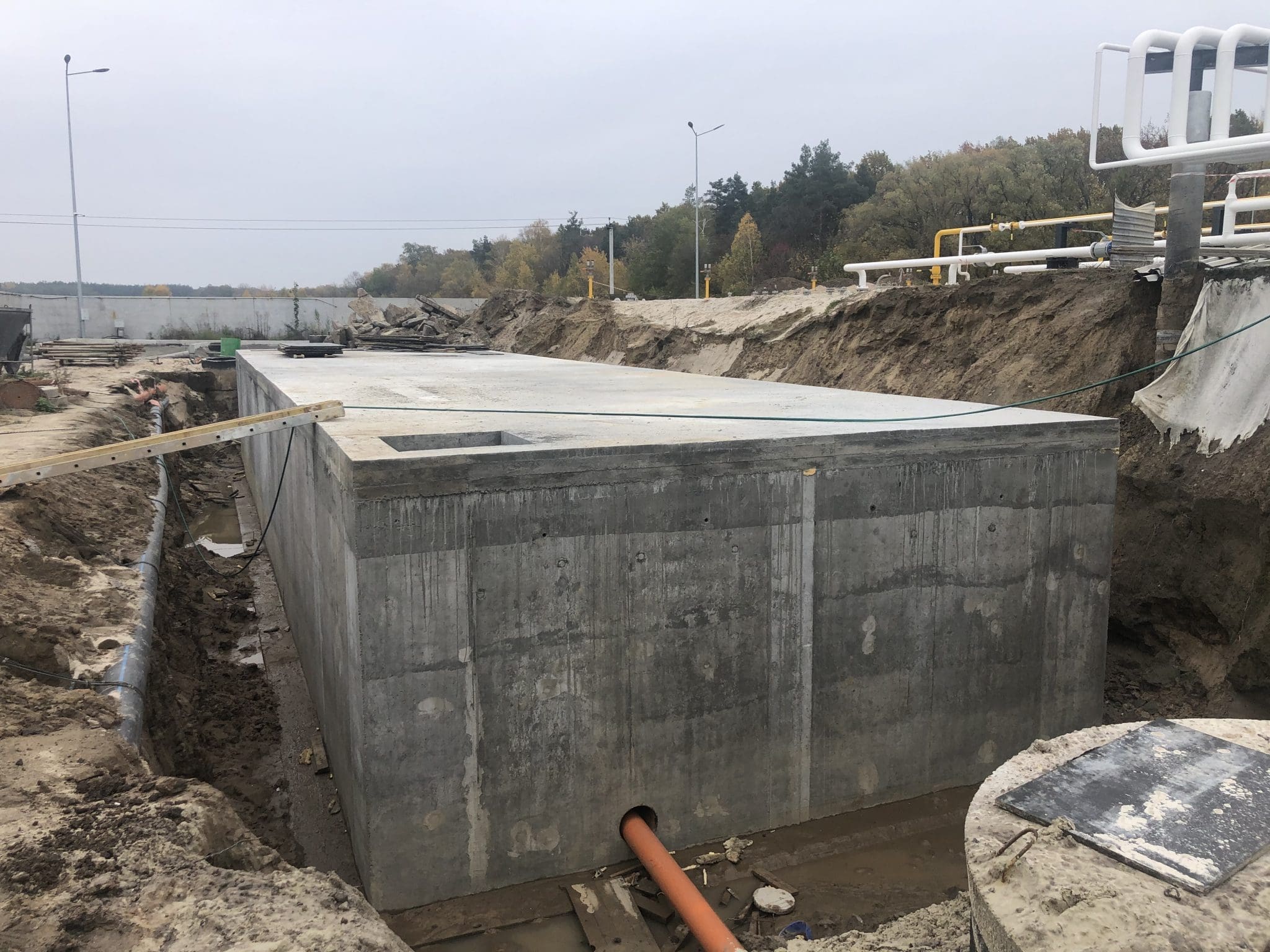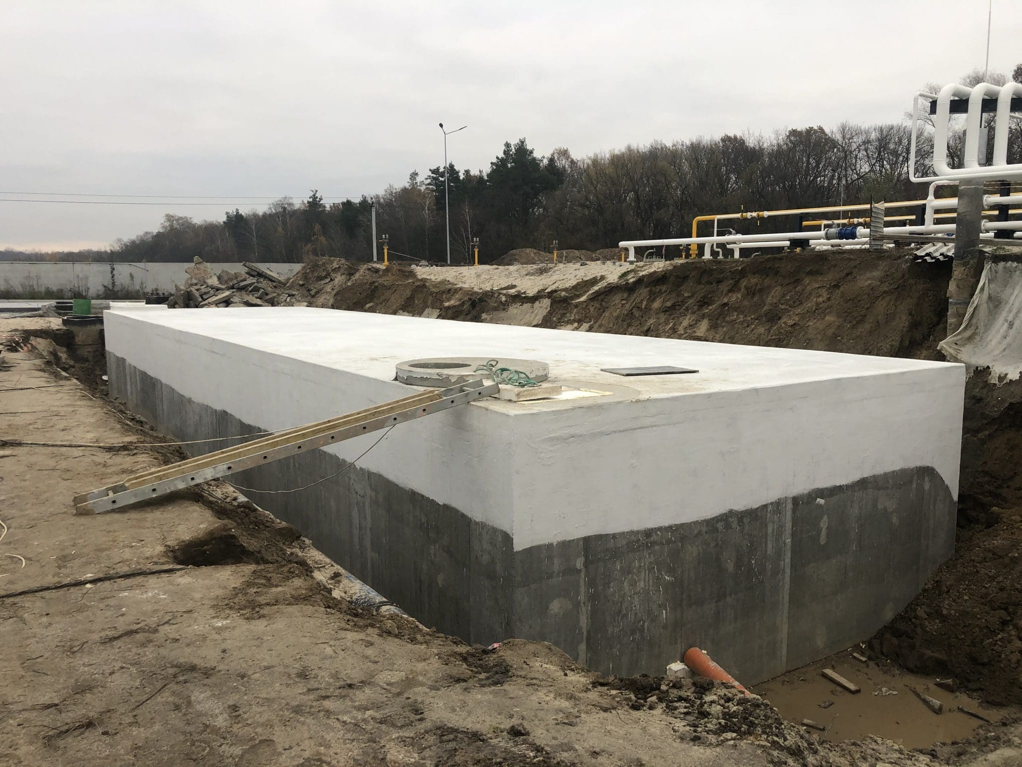 Основные плоскости резервуара снаружи обработаны проникающей гидроизоляцией KRYS PREMIUM для уплотнения структуры бетона и блокировки фильтрации.