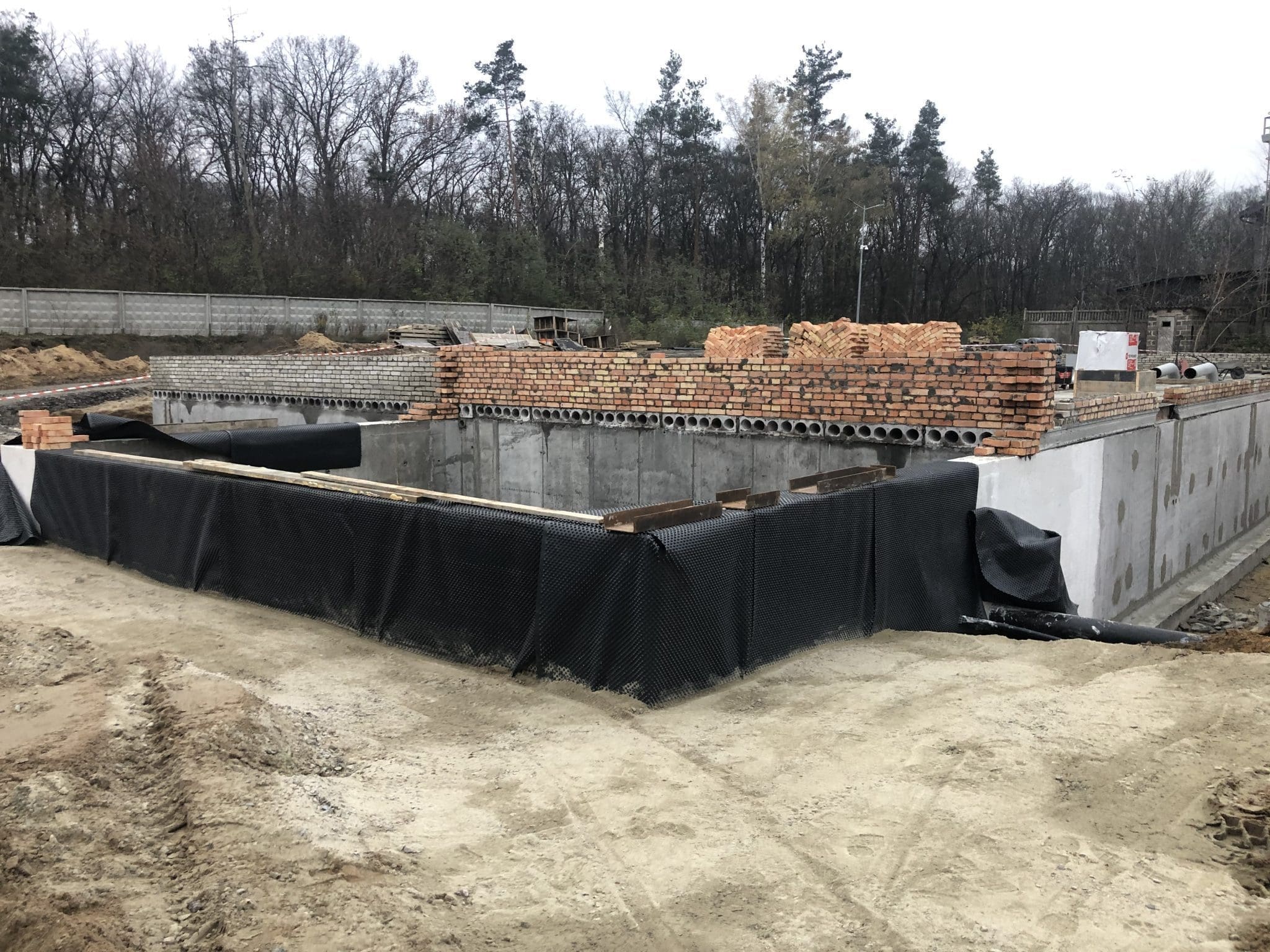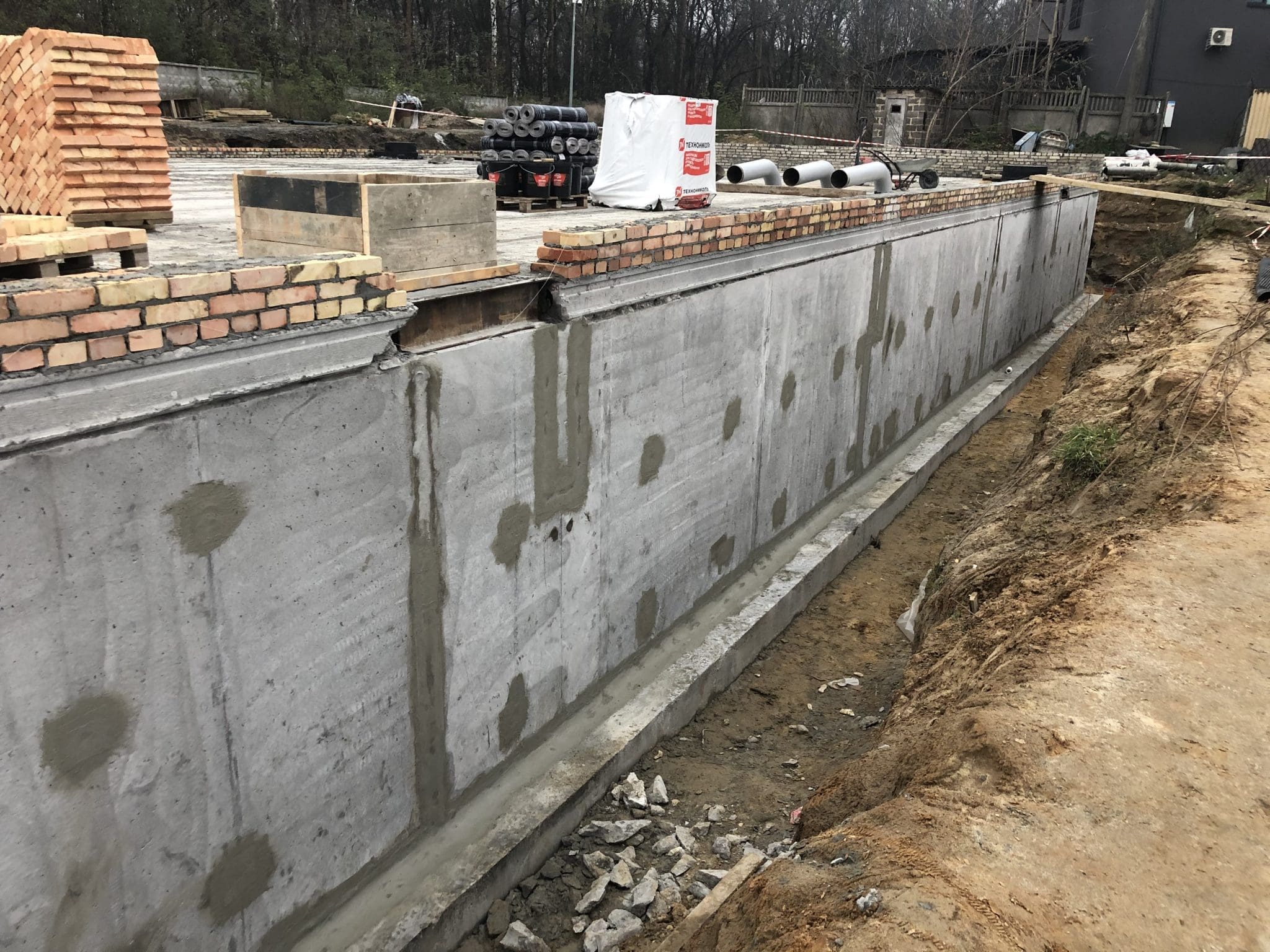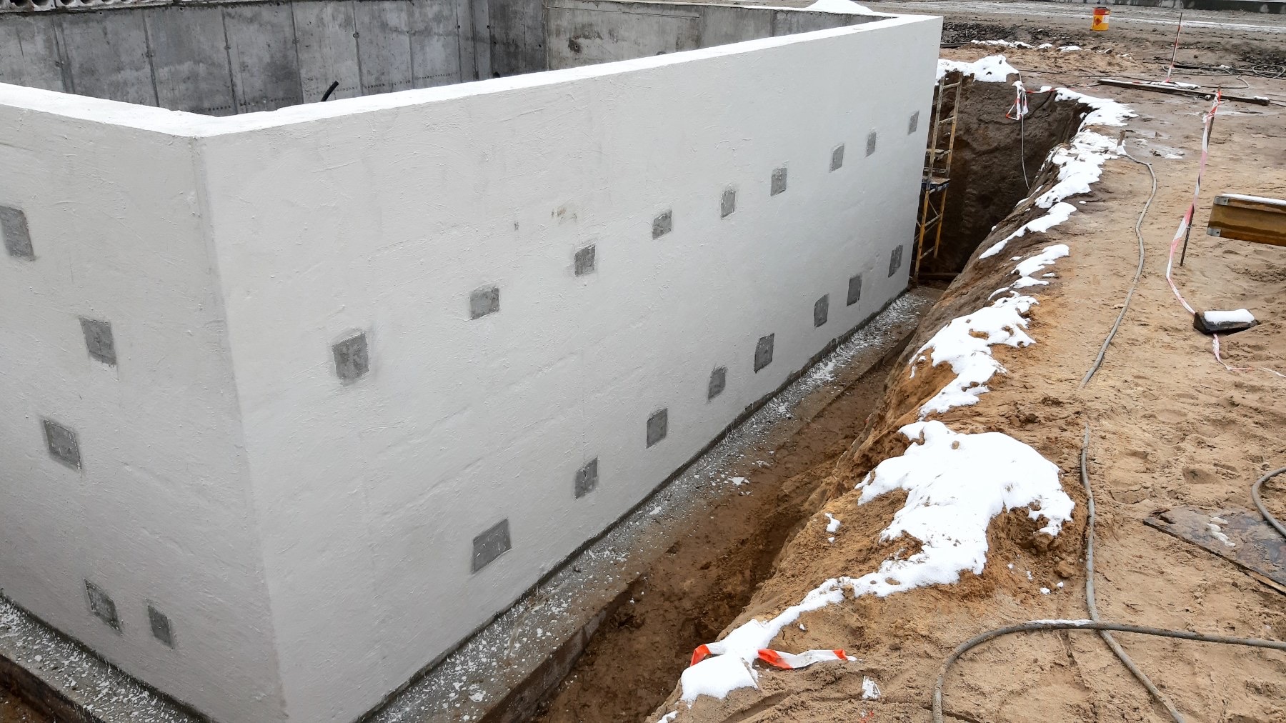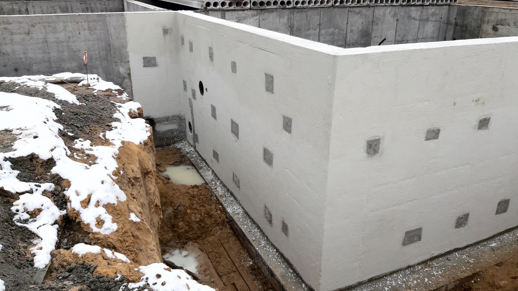 Примыкания, холодные швы и узлы дополнительно усилены эластичной гидроизоляцией KRYS FLEX. В результате создана комбинированная система защиты, работающая как при положительном, так и при отрицательном давлении воды.