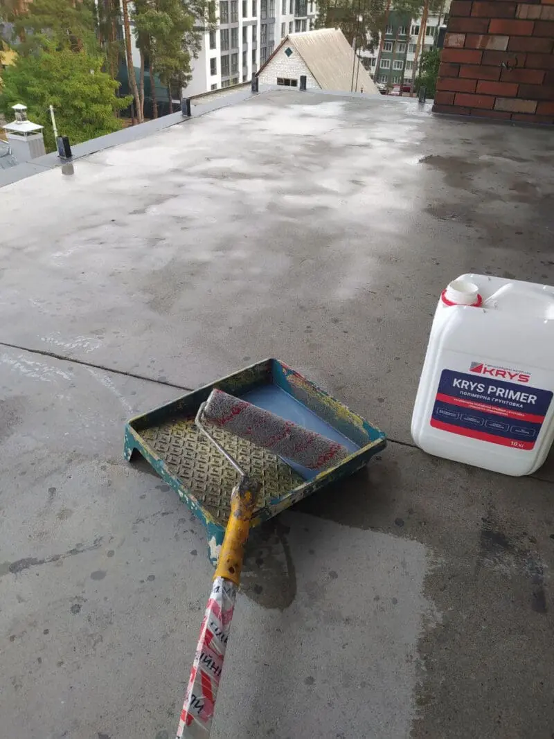 KRYS PRIMER постачається у стані, повністю готовому до використання. Не потрібно розбавляти суміш водою або розчинником, властивості і характеристики можуть значно погіршитись. Матеріал легко наноситься щітками, широкими пензлями (макловиця), валиками, швабрами і т.д. В середньому через 5-6 годин вже можна виконувати наступні етапи робіт.