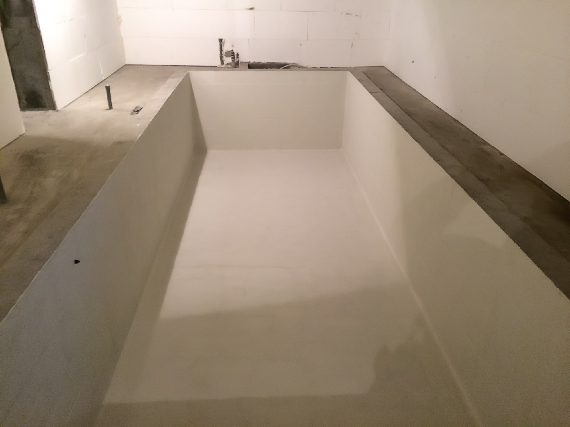 Головна мета, яку потрібно досягти – ідеально чиста рівна бетонна основа. Без крихких часток, пилу або сторонніх покриттів. Цей етап включає в себе демонтаж старого покриття, неефективної гідроізоляції, зачистка і/або зашліфовки виступів, нерівностей, каверн т.д. У кожному окремому випадку потрібно прийти до одного результату: гідроізоляцію можна наносити тільки на очищену рівну бетонну чашу басейну.