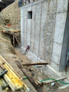 - Основний гідробар'єр: На всю зовнішню площу стін нанесено 2 шари матеріалу KRYS PREMIUM. Він створив міцне водонепроникне покриття на поверхні та забезпечив глибоку проникаючу дію, кристалізуючи пори всередині бетону.