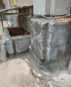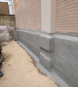 Фундамент капітально відновлено. Стіна отримала внутрішню гідрофобність завдяки Hydrosilic та зовнішню герметичність завдяки системі KRYS RM FAST + KRYS FLEX.